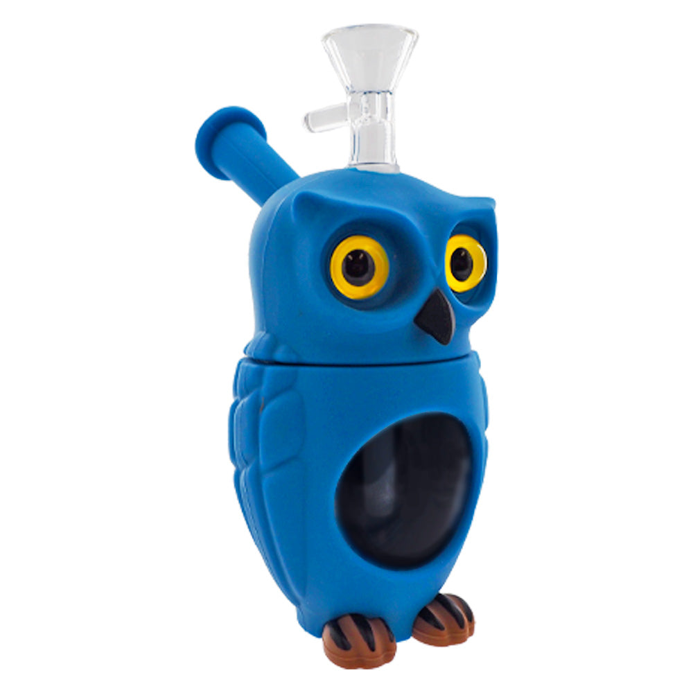 BÚHO AZUL BONG VIDRIO SILICONA 16CM