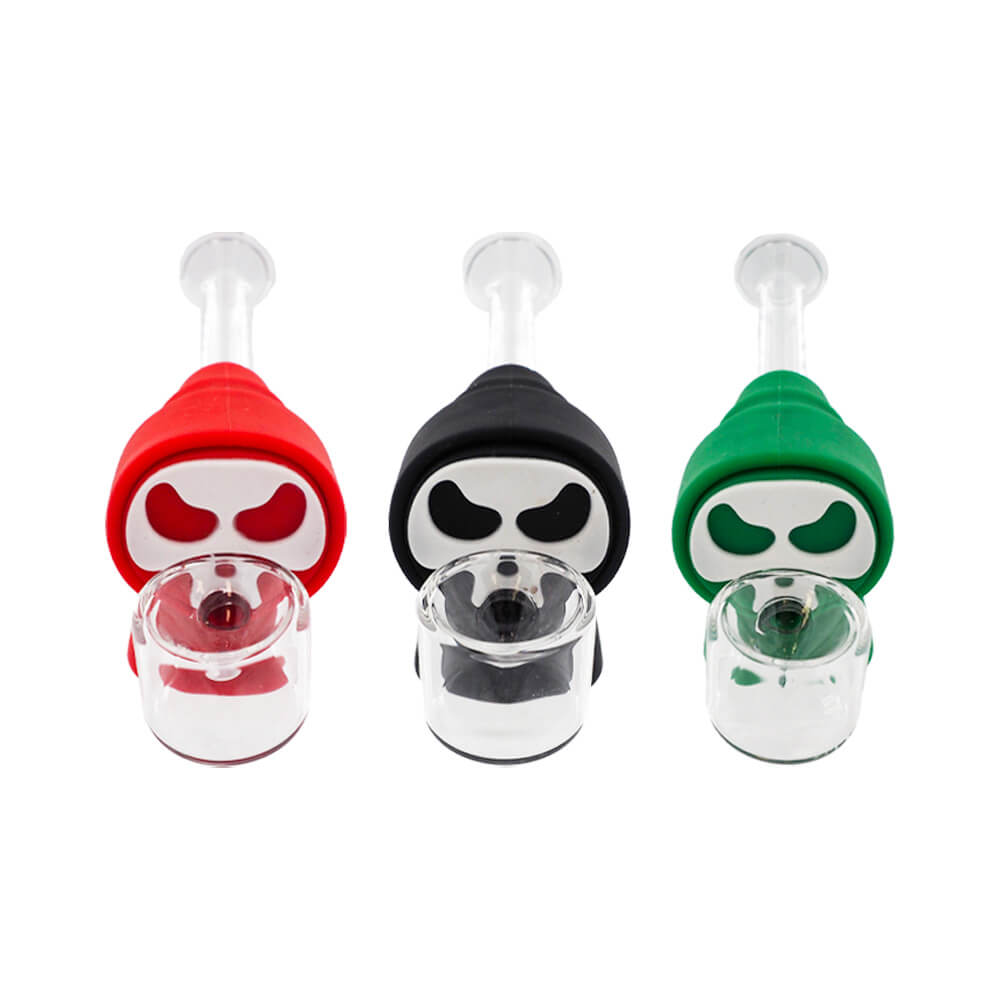 PIPA DE VIDRIO Y SILICONA CALAVERA CON PIEZAS DESMONTABLES